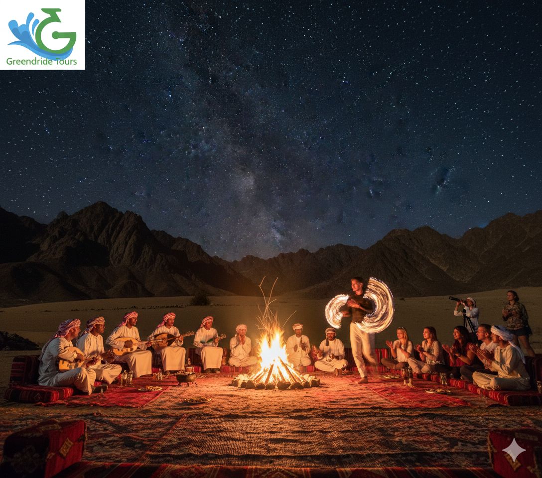 An authentic Bedouin mountain evening featuring traditional music, fire shows, and stargazing in the heart of the desert.